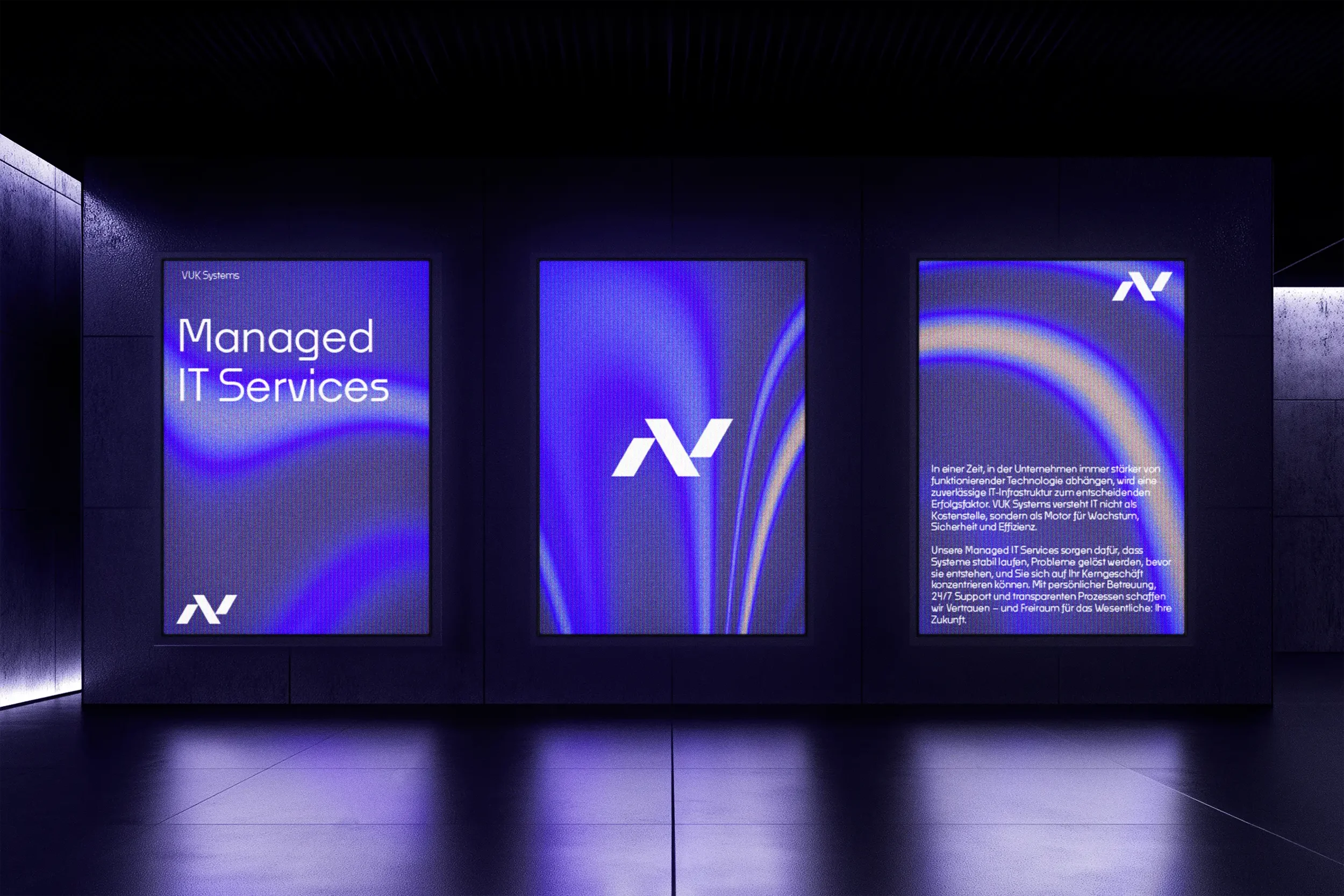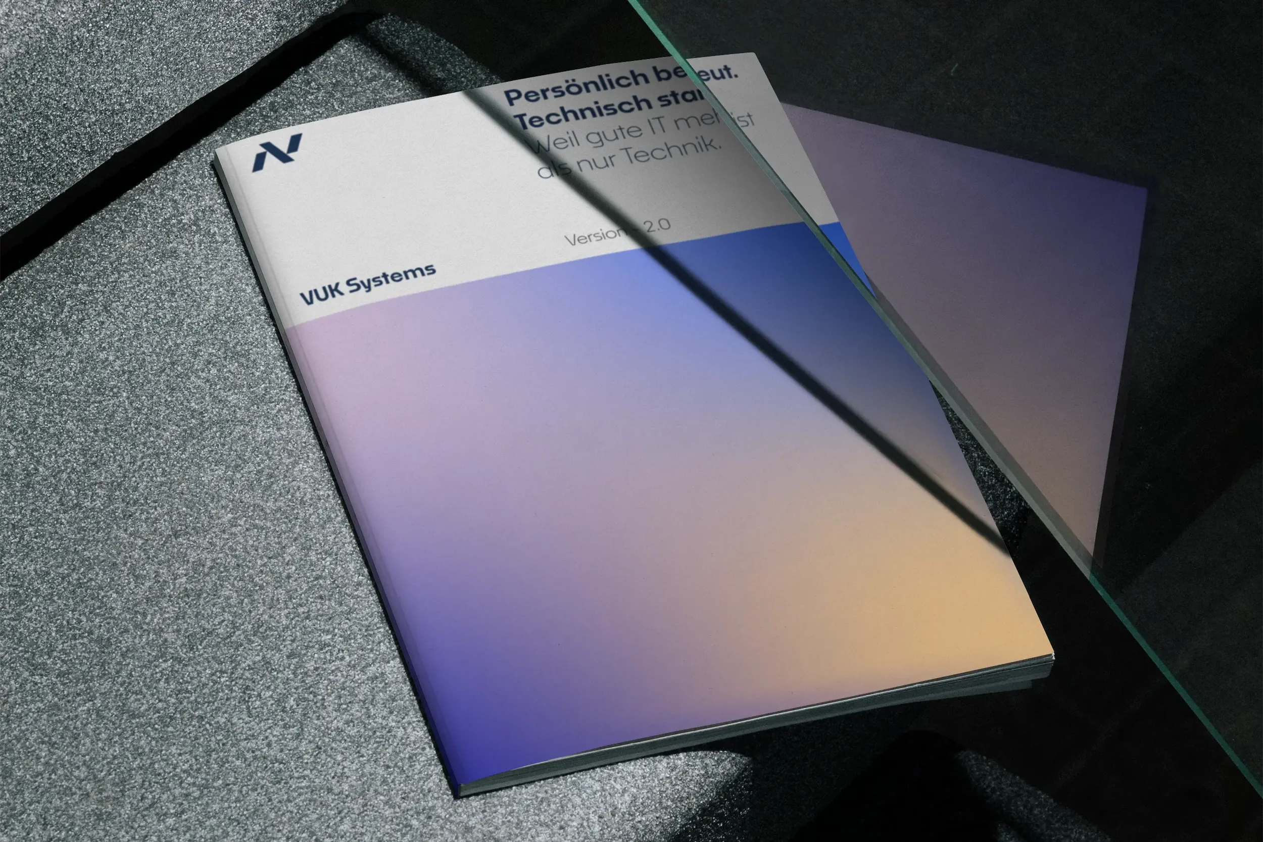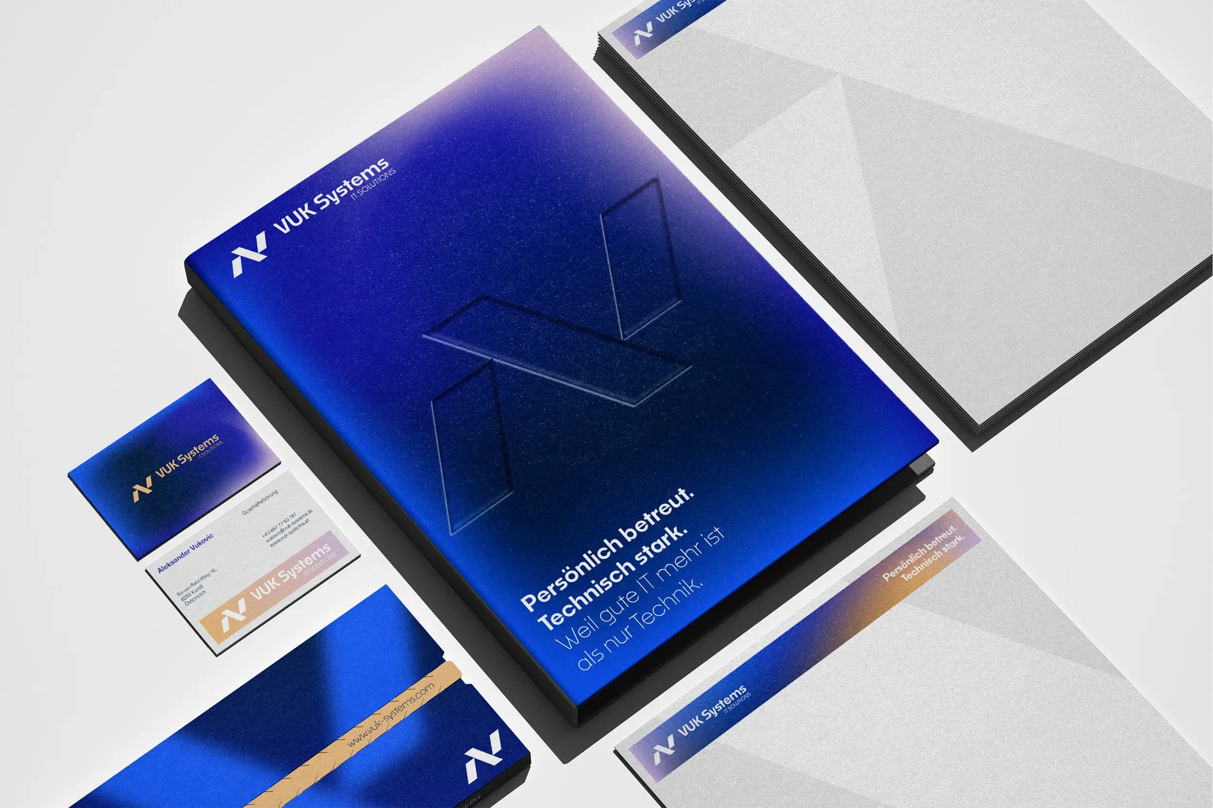 Wir haben eine Markenidentität entwickelt, die diesen modernen und praxisnahen Ansatz widerspiegelt. Das visuelle Erscheinungsbild umfasst ein klares, zeitgemäßes Logo, eine reduzierte Farbpalette mit technologischer Anmutung sowie eine sachliche Typografie, die Kompetenz und Transparenz vermittelt. Die Gestaltungselemente sind vielseitig einsetzbar und sorgen für einen konsistenten Auftritt über alle Kanäle – von Print bis Digital – und positionieren VUK Systems als verlässlichen Partner für nachhaltige IT-Lösungen.
